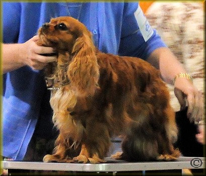 In keeping with my goal for her championship, Birdie earned all of her points (including 3 majors) from the Bred By Exhibitor class. She followed in the paw-steps of her daddy JoJo, who also finished out of BBE (with three majors). I would like to thank those fellow competitors who congratulated us on each win, and especially thank the judges who could see past Birdie's handler (me!) for her Championship and Grand Championship. Along the way she did very well with numerous Bests of Breed, Bests of Opposite Sex and Grand Champion Selects, and - with her happy attitude - was a joy to show! (At last check - October 2011 - Birdie was the #1 Cavalier in Oregon, the #3 Cavalier bitch in the US, and the #18 Cavalier in the US; how fun!)