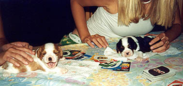 Special thanks to "Bibben" and "Ronja" for permission to use their darling Cavalier graphics! Baby graphics are from 'Touch Of Country Graphics'. Java & DHTML scripts are available from DynamicDrive & JavaScriptSource. And thanks to Janet for creating it, and to Laurel T. for turning my flying Cavalier into a transparent GIF!