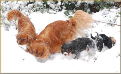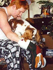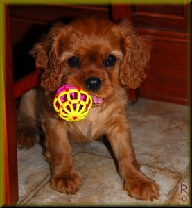 Cavaliers are happy, playful, loving, intelligent, gentle, and very adaptable, so will eagerly share your passions and hobbies. They are more than willing to offer assistance in eating blackberry pie, and are marvels at urging people to hurry up with opening christmas stockings (especially if those stockings contain puppy toys!).