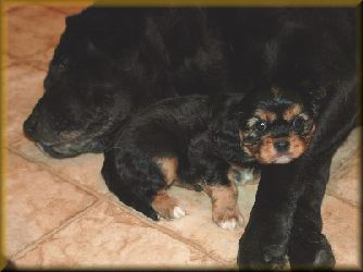 They certainly are wonderful mothers, and don't mind sharing their babies - and mommy duties - with other furry family members. They don't even mind if the dad joins in to check out his kids! It's an interesting relationship of trust and cooperation, not found with every breed.