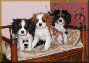 Although this page has Cavaliers of all four colors, I now breed ONLY wholecolors: the Black & Tan and Ruby Cavaliers!