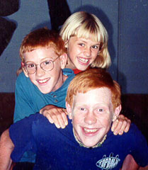 Stage left is Colin (now 34), in the center is Brittany (now 30), and stage right is Kyle (now 32). This was taken at a friend's wedding in July 2004 |