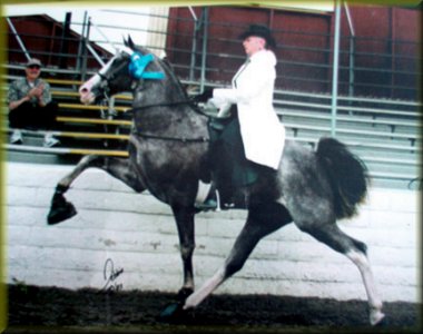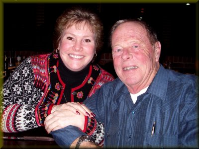 < < My dad and I at dinner (December 07) I don't have any other photos of my dad on a horse (may he RIP) - but here's Sally with a couple of their Tennessee Walking Horses! |