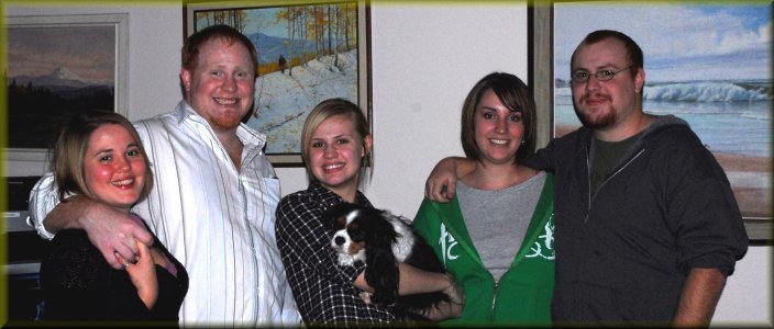 Here is a 2008 photo. (left to right) Steph, Colin, Brittany (holding Koni, of course), Mirana, and Kyle |